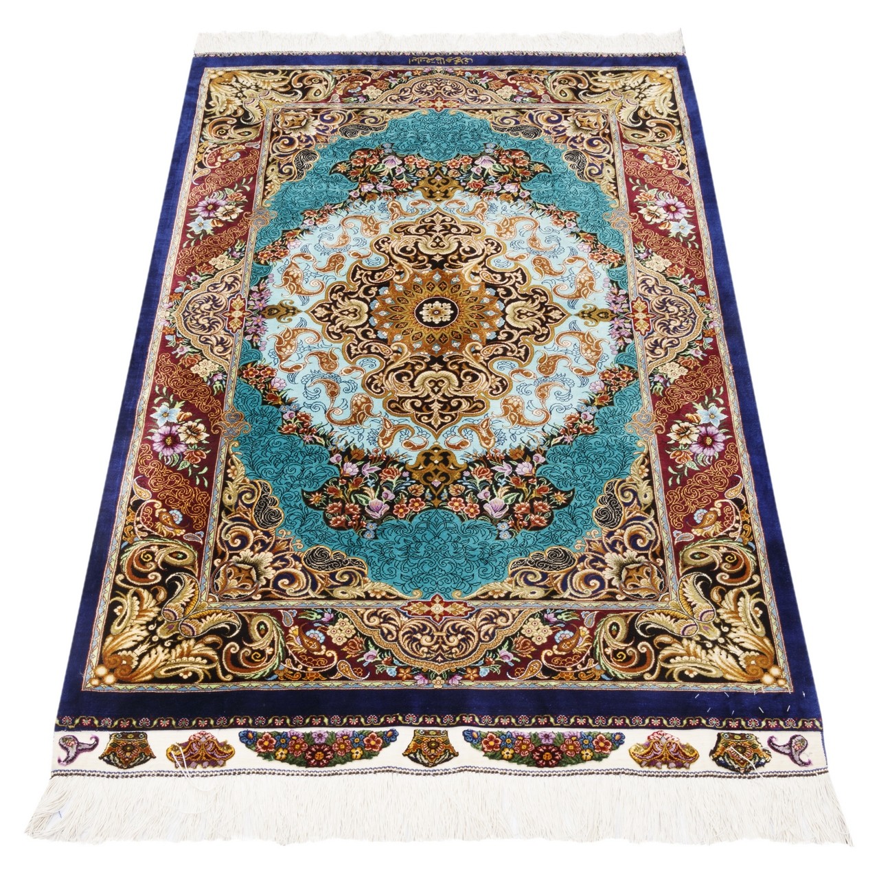 Handwoven Carpet Corner Medallion Layout All Silk Qom 80 × 120 cm Ref 10000237 Handwoven Carpet