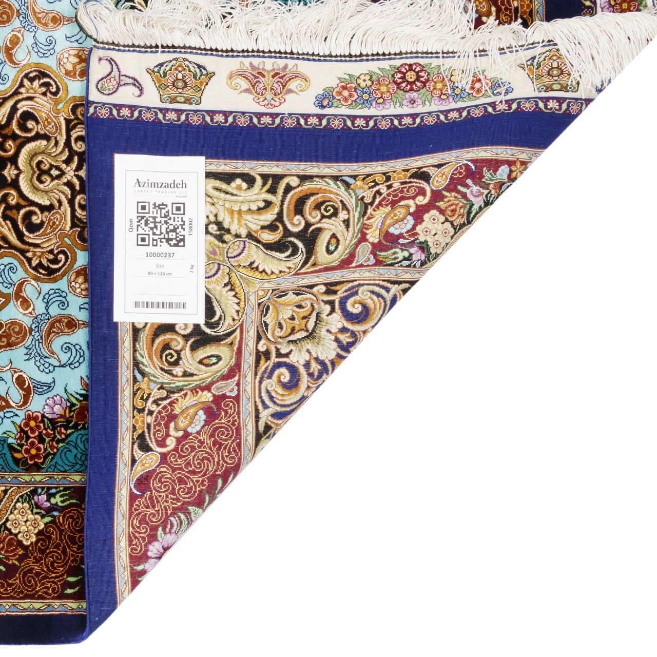 فرش دستباف طرح لچک ترنج تمام ابریشم قم 80 × 120 کد 10000237