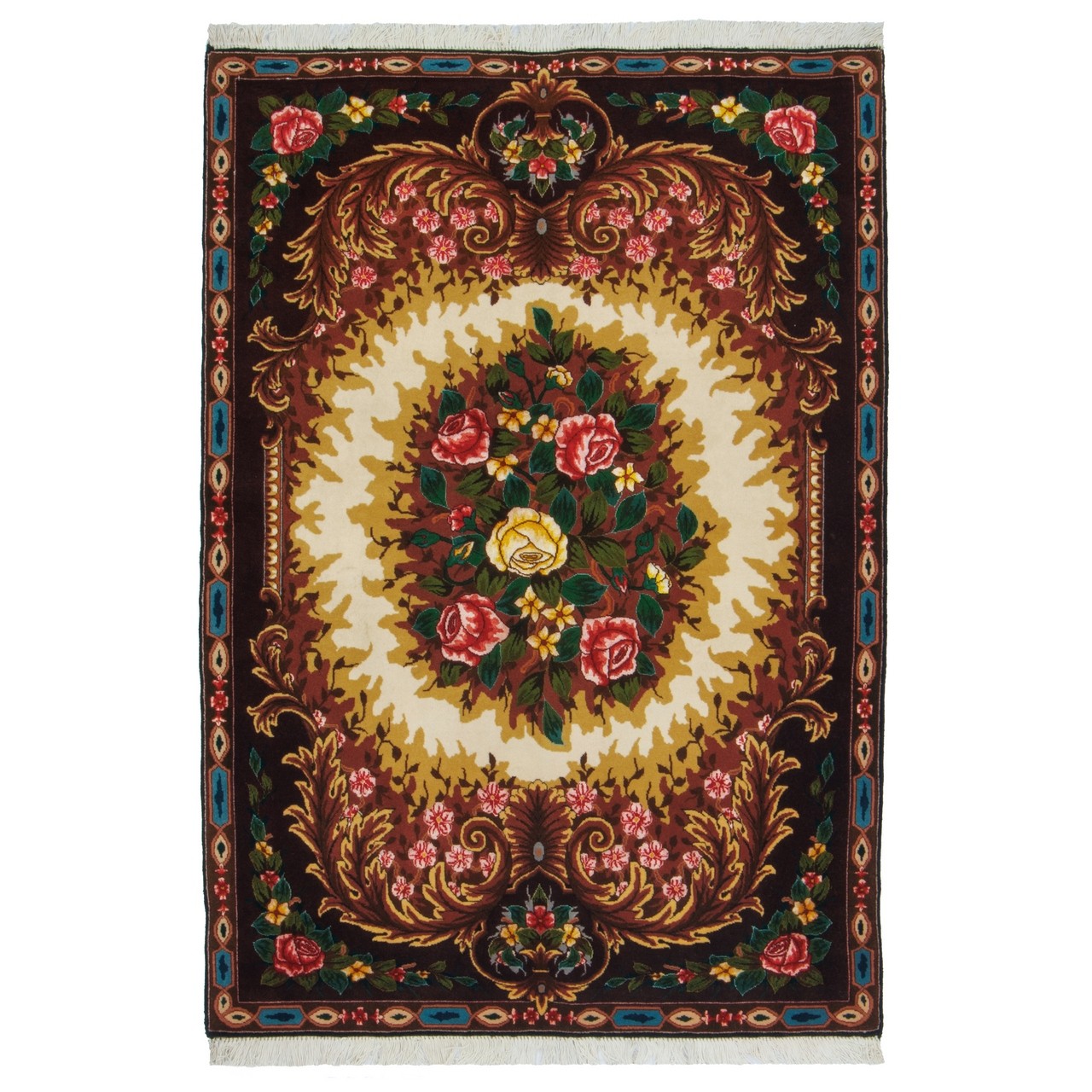 Handwoven Carpet, Corner Medallion Layout, Wool and Silk on Cotton Warp, Tabriz, 100 × 150 cm Ref 10100872