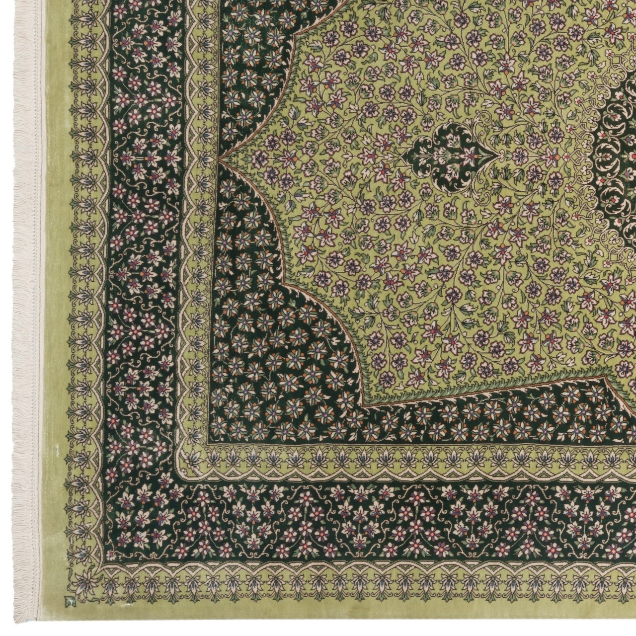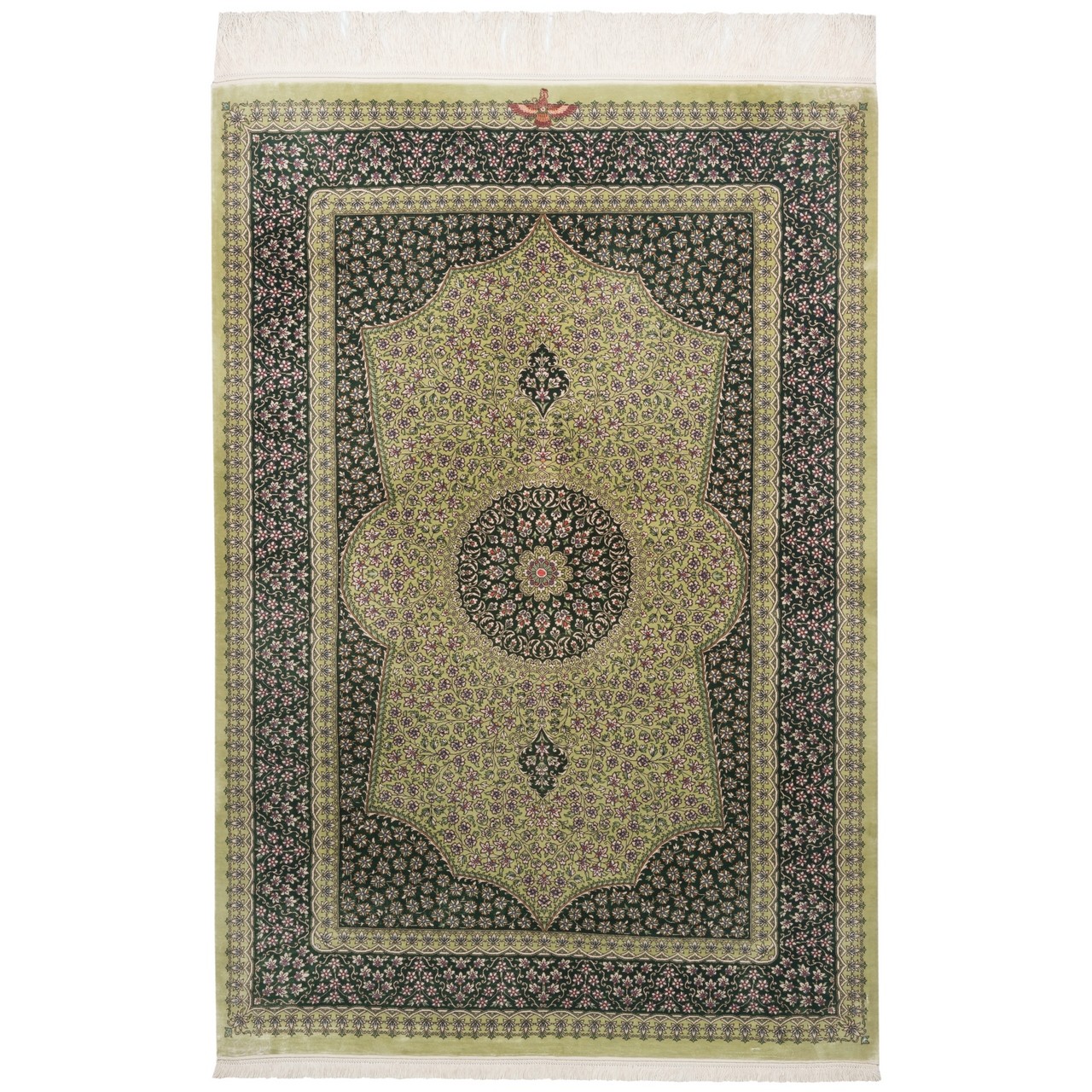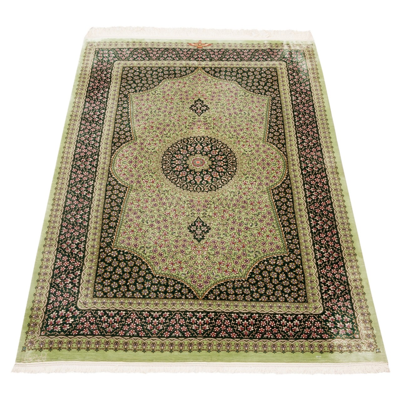 Handwoven Carpet Medallion Layout All Silk Qom 100 × 145 cm Ref 10100181 Handwoven Carpet