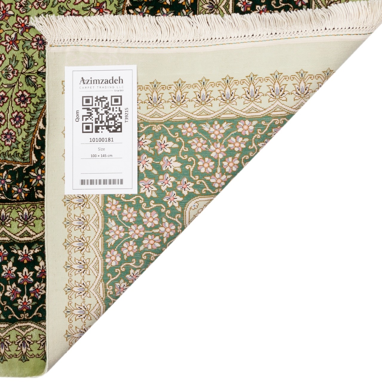 فرش دستباف طرح ترنج دار تمام ابریشم قم 100 × 145 کد 10100181