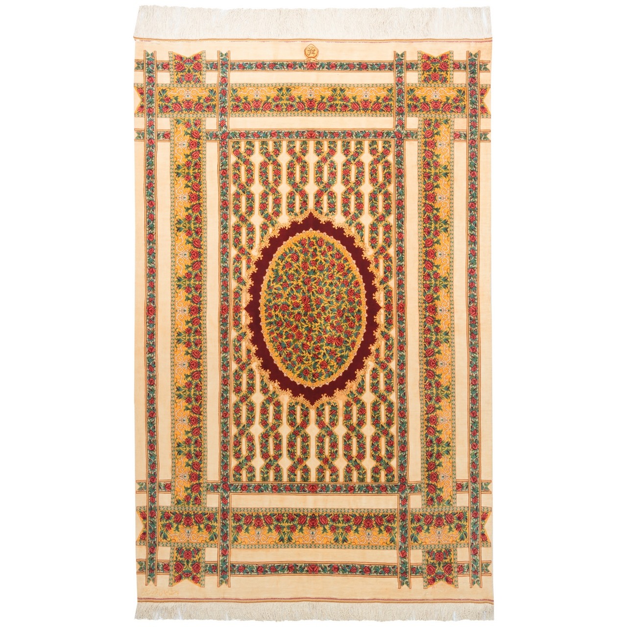 Handwoven Carpet Medallion Layout All Silk Qom 100 × 150 cm Ref 10100186 Handwoven Carpet