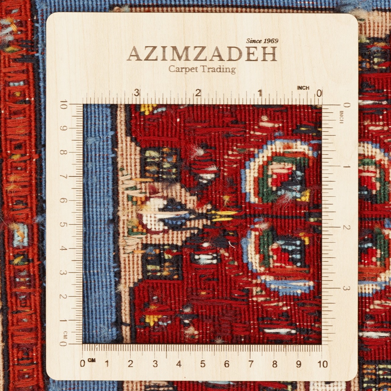 گلیم‌ فرش دستباف با طرح ترنج‌دار است؛ اثری با ابعاد 102 × 152 سانتی‌متر و مساحت 1.56 متر مربع که در سیرجان بافته شده است. جنس گلیم از پشم و رجشمار 40 است، که نشانی از مهارت بافنده و انسجام ساختاری گلیم است. طرح ترنج‌دار این گلیم، برگرفته از معماری و زیبایی‌شناسی مرکزی‌محور ایرانی‌ست؛ با ترنجی در دل و نقش‌های هندسی پیرامون آن که ساختار بصری را حول یک نقطه تمرکز می‌سازند. رنگ زمینه‌ی آبی، با وقار و آرامش خاص خود، در تضاد زیبا با حاشیه‌ی لاکی پُررنگ، ترکیبی کلاسیک و دلنشین پدید آورده که چشم را خیره می‌سازد.