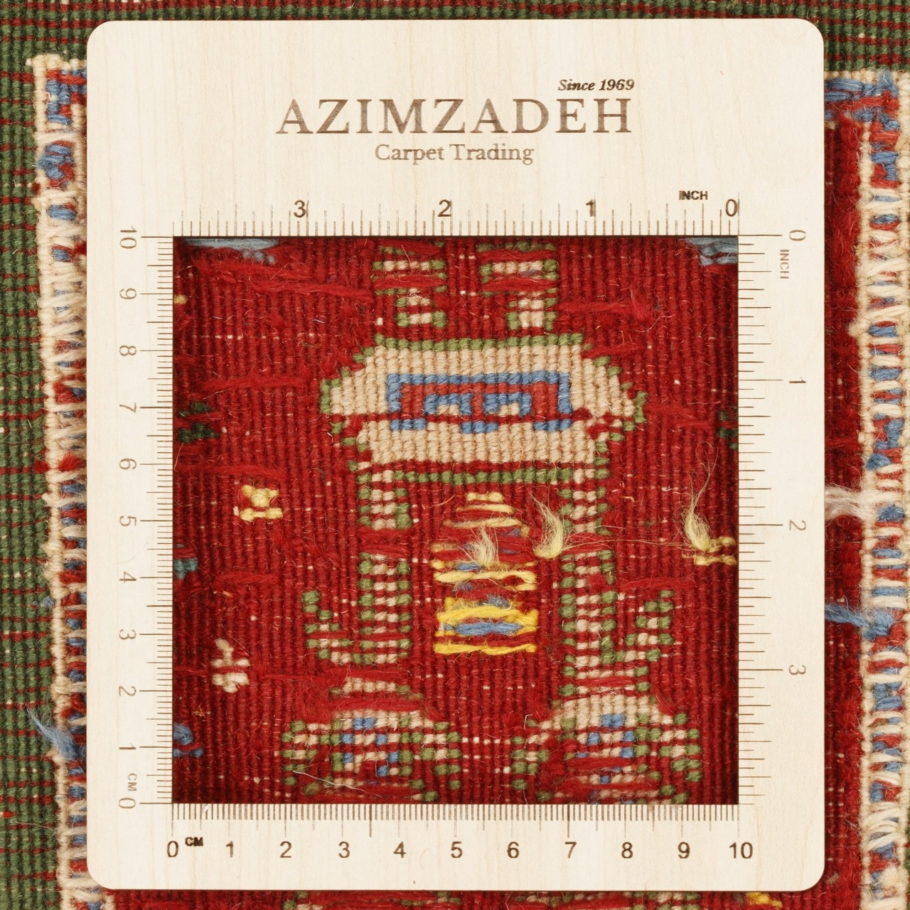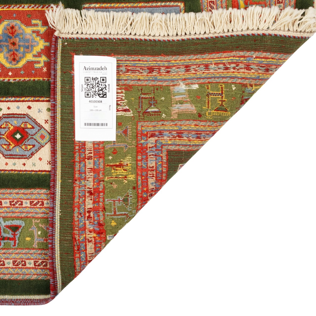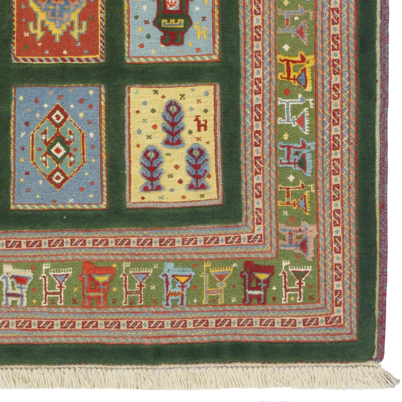 این گلیم فرش دستباف سیرجان، با طرح اصیل خشتی، با ابعاد 100 × 155 سانتی‌متر و مساحت 1.55 متر مربع بافته شده است. با رجشمار 30 و به صورت تمام پشم تولید شده است. رنگ زمینه‌ی سبز تیره، با طراوتی خاص، در حاشیه‌ای با رنگ زیتونی آرام، تضادی ملایم را به وجود آورده است. طرح خشتی در این گلیم با ساختاری منظم و نقوش هندسی دقیق بازآفرینی شده است. هر خشت، همچون پنجره‌ای است رو به جهانی از فرم‌های سنتی که ذهن بیننده را به دل معماری کویری رهسپار می‌کند. این گلیم، انتخابی‌ست برای آنان که به‌دنبال پیوندی میان طبیعت و فرهنگ، اصالت و کارکرد هستند.